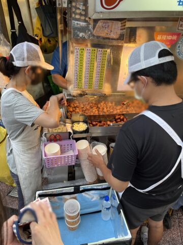 基隆夜市を歩いていると、みんな、紙のカップに入ったものを、手に持って歩いている。