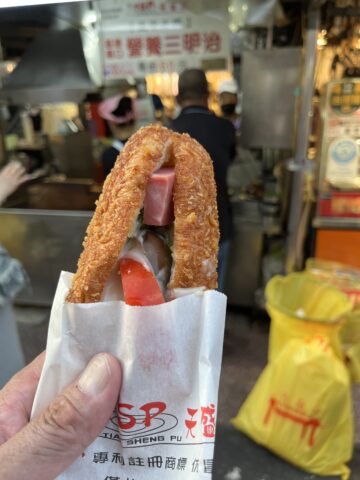 「栄養三明治」という揚げパンサンド。60元(300円)。