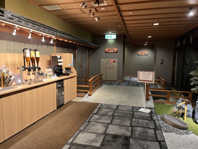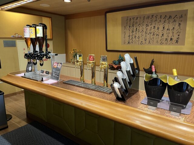 プレミアムよしのや依緑園さんは大江戸温泉の系列で、部屋に入る前にもラウンジで飲めるなんて最高ですね
