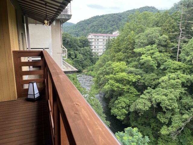 脱衣所に行くと、ガラス張りになっていて、そこから、川の流れが見えるようになっている。