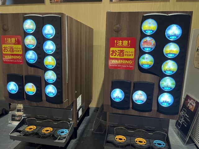 アルコールは、ビールや焼酎、ワインに加えて、ソフトドリンクの機械かなと見えるのだが、実は、ハイボールや、酎ハイなどの機械だったりするのがあって、面白い。