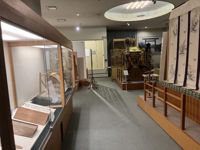 神社の祭祀に関する資料が並べられている。