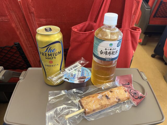 ビールや、練り物の天ぷらなどを買って、特急に乗り込んで、まずは、ビールを、プシュッと開けまして、練り物を頂く。