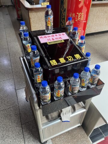 ふと、横を見ると「媽祖加持平安水 随喜功徳」と書かれたペットボトルがあるじゃない。