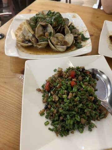 野菜もたべたいなと思い、イカと、ニンニクの花の炒めものみたいなのを注文。