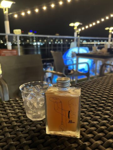 コップと氷と、カクテルをもって、コンテナの屋上にのぼる。