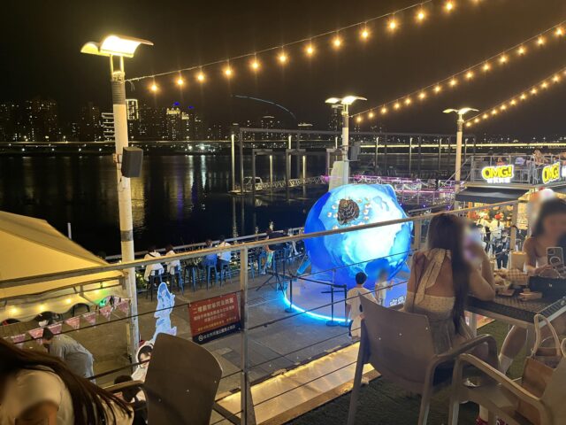 淡水河の岸に、屋台のような感じでコンテナが並べられていて、今、若者に人気の場所らしいのだ。
