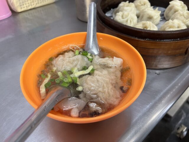 小籠包を一籠と、前回、その漢字を見て、うどんだと勘違いしたワンタンを注文。
