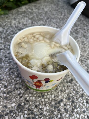 このスイーツを買ったのは、豆花というのを食べたことが無いというのと、おっちゃんのTシャツが気に入ったからだ。