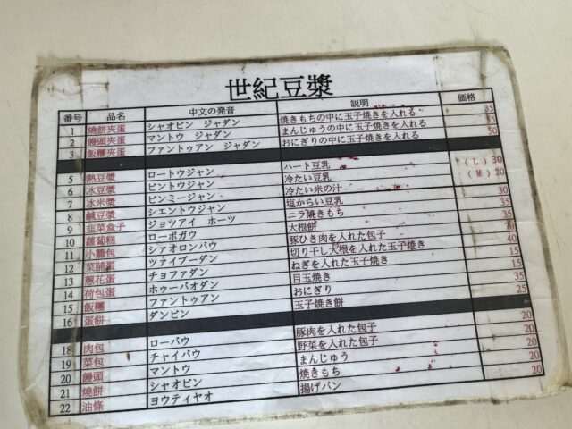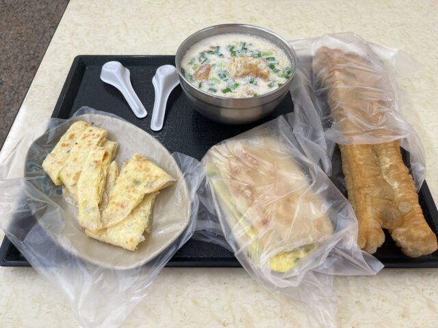 鹹豆漿とダンピンと呼ばれる玉子焼きのクレープみたいなものと、記憶が定かではない何か忘れた何かを注文。そして、鹹豆漿には、これがいるよねと油篠と呼ばれる揚げパンをお願いした。