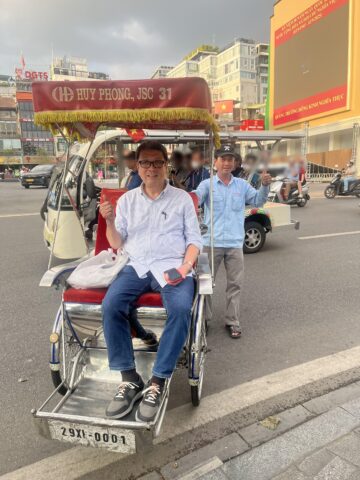 なので、乗るのは、少しばかり恥ずかしい気持ちもしないではない。しないではないのだが、ハノイに来ている西洋人は、そんなことを気にしないで楽しそうに乗っているではないか。