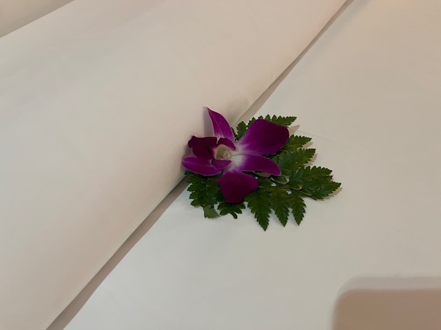 ベッドに、蘭の花が置かれていた。