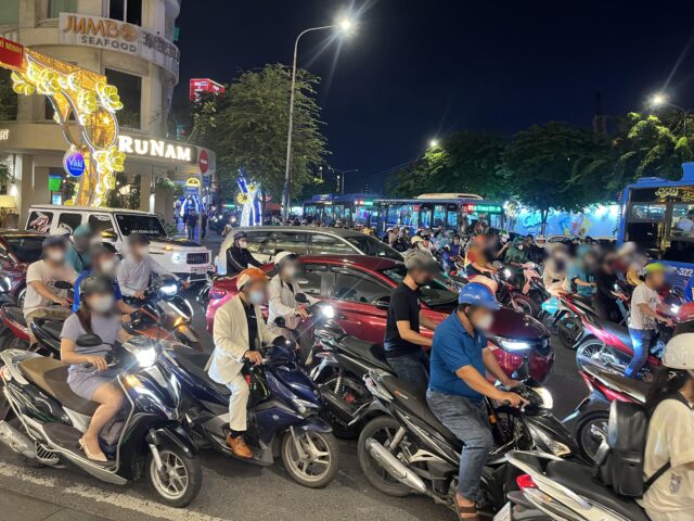 ホテルを出ると、バイクと車のラッシュ。