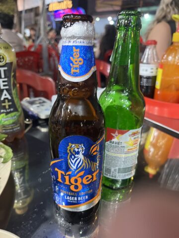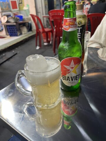 本当なら、ビールは、そのまま飲むのが美味しいと思うのだけれど、ベトナムに来たら、やっぱり、氷を入れなきゃね。