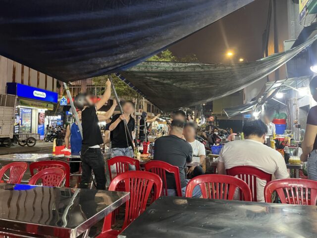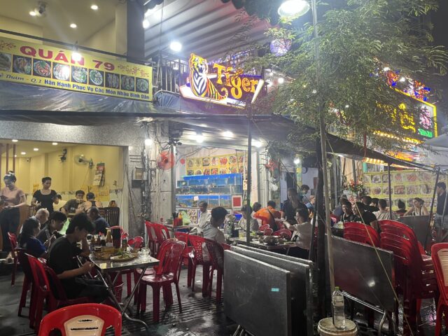 お店の前に、テーブルと椅子を並べて営業するスタイルは、やっぱり、ベトナムならではのもの。