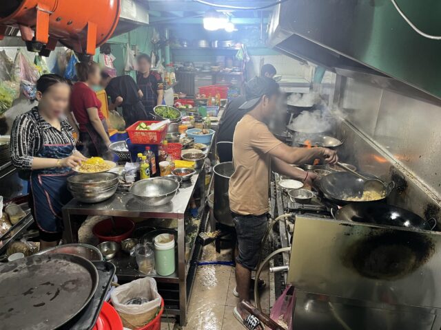 厨房を覗いてみたら、結構スタッフも多くて、中華鍋を豪快に振っている。