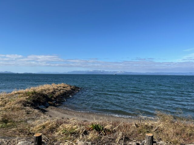 琵琶湖が目の前なので、散歩してみようとしたが、寒いので、すぐに部屋に戻る。